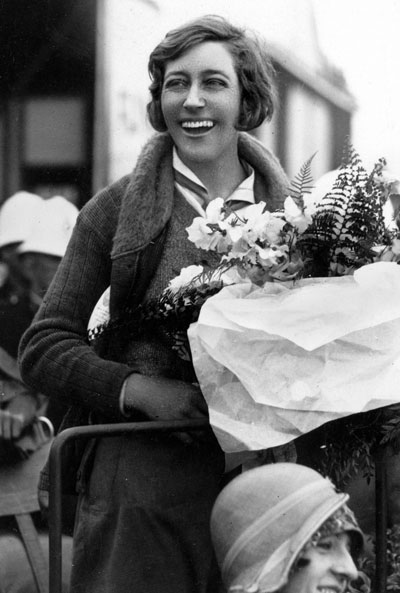 Aviator Amy Johnson after her arrival in Brisbane, Queensland in 1930 - Photographer: F. W. Thiel.