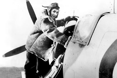 Diana Barnato Walker climbing into the cockpit of a Spitfire while serving with the Air Transport Auxillary