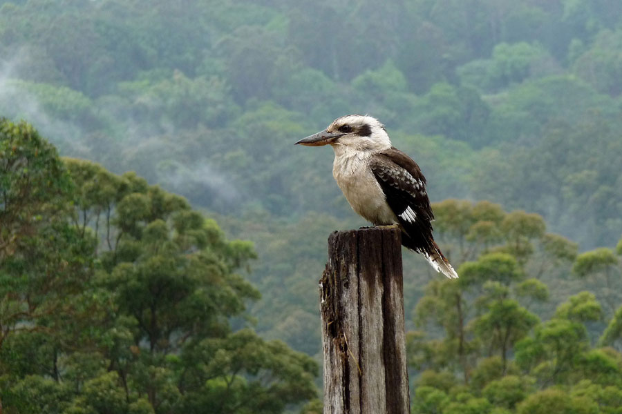 Getting all their moisture from their food, Kookaburras never need to drink water. They nest in hollow trees or termite mounds.