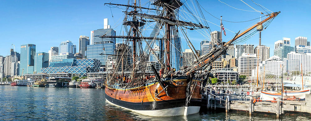 HM Bark Endeavour Replica is a replica of HMS Endeavour, the bark commanded by Lieutenant James Cook when he charted New Zealand and discovered the eastern coast of Australia. The idea of recreating Endeavour for use as a museum ship was generated during the establishment of the Australian National Maritime Museum in the 1980s; the vessel would be funded by the Bond Corporation, and gifted to the nation on completion. A specialist shipyard, complete with viewing platform and guided tours for the public, was set up, and construction of the vessel commenced in 1988. Two years later, work stopped because the Bond Corporation hit financial trouble; a Japanese company, the Yoshiya Corporation, stepped in, but was also forced to withdraw support because of financial problems.