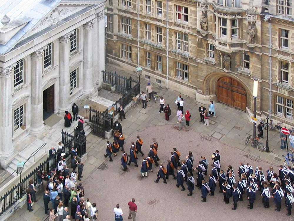 Trinity College graduates entering the Senate House during a University graduation ceremony.