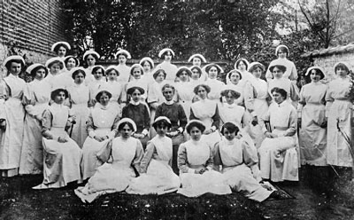 Cavell (centre) with a group of multinational student nurses whom she trained in Brussels
