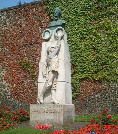 Memorial to Cavell outside Norwich Cathedral