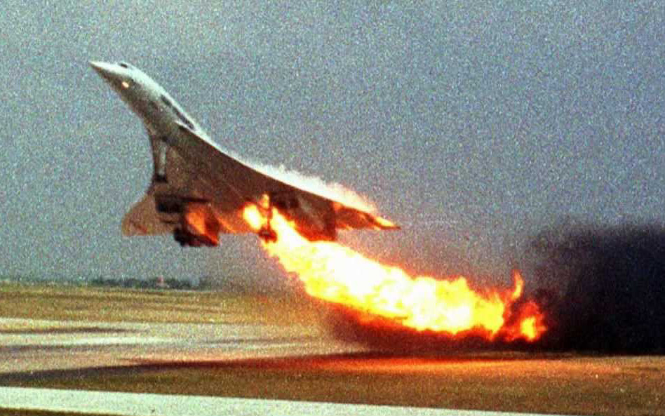 Air France Concorde Flight 4590 on fire during take-off at Charles de Gaulle International Airport, Paris.