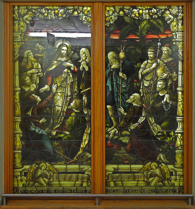 Commemorative stained glass window preserved at North Manchester General Hospital. Originally commissioned for the Cotton Districts Convalescent home, Southport, in 1896