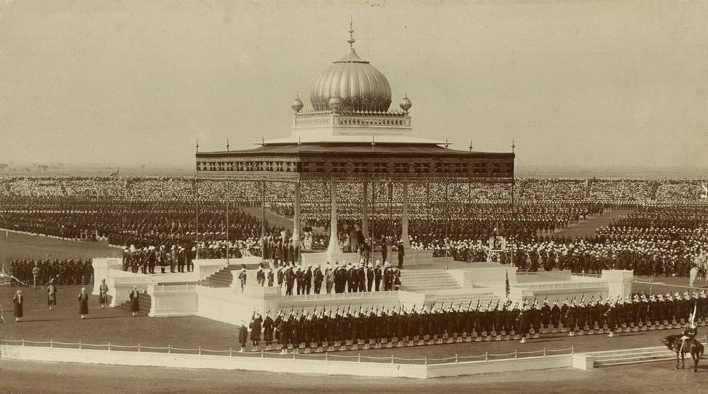 The Delhi Durbar of 1911, with King George V and Queen Mary seated upon the platform.