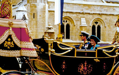 Twenty-year-old Diana became Princess of Wales when she married the Prince of Wales on 29 July 1981 at St Paul's Cathedra. The service was widely described as a "fairytale wedding" and was watched by a global television audience of 750 million people while 600,000 spectators lined the streets to catch a glimpse of the couple en route to the ceremony. At the altar, Diana inadvertently reversed the order of Charles's first two names, saying "Philip Charles" Arthur George instead. She did not say she would "obey" him; that traditional vow was left out at the couple's request, which caused some comment at the time. Diana wore a dress valued at £9,000 with a 25-foot train.