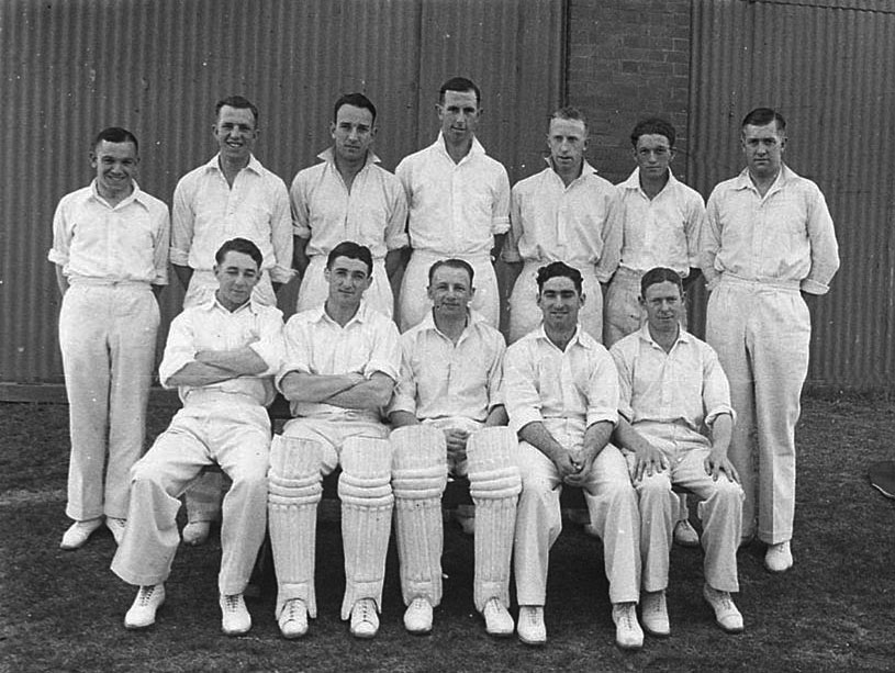 The 1930s Bardsley-Gregory cricket team. Don Bradman in middle, front row.