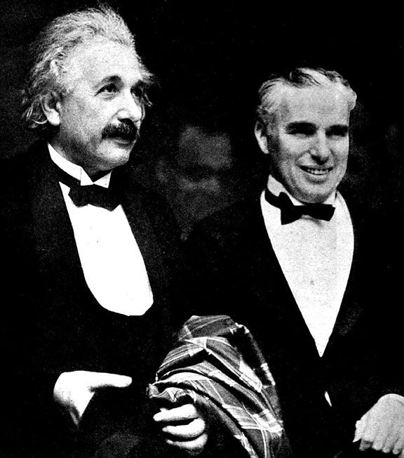 Albert Einstein and Charlie Chaplin at the Los Angeles premiere of the film City Lights. Einstein said Chaplin was the only person in Hollywood he wanted to meet. The Chaplins played host to the Einsteins at the film's premiere.