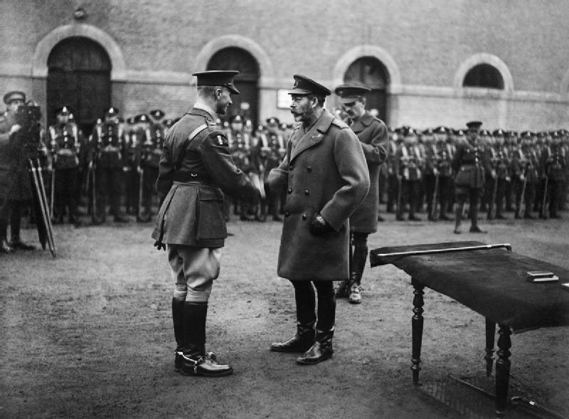 Daniel Marcus William Beak is presented with the Victoria Cross by King George V at Valenciennes,