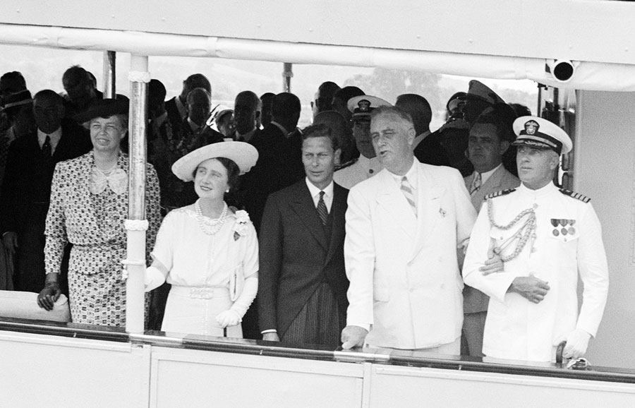 Franklin and Eleanor Roosevelt with George VI and Queen Elizabeth, on the USS Potomac, 9 June 1939.