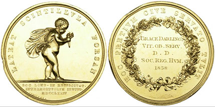 The Iconic and Excessively Rare Royal Humane Society Gold Medal award presented to the renowned Victorian heroine Grace Darling