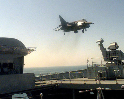 A Harrier GR7 taking off from the aircraft carrier HMS Illustrious