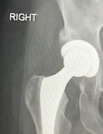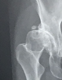 The before X-ray of hip dysplasia and the damage ostoarthritis can have on a joint.