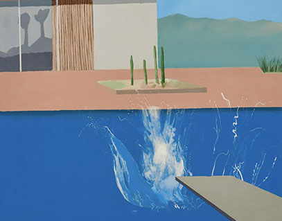 A Bigger Splash is a perfect promotional image of California, a sketch of the symbols of its way of life, of the clichés of its decor. A perfectly pure sky, low and modern houses, wide open, palm trees with perched high tops and, of course, swimming pools, more swimming pools … A “producer” chair reminds us by its presence that Hollywood is not far. Such a synthesis did not spring thus constituted from the brush of Hockney. Two 1966 paintings announce A Bigger Splash The Little Splash, the first in the series, draws a swimming pool with still curvilinear shapes. It shows a house, whose sloping roof sacrifices more to nostalgia than to local laws of rainfall. The Splash, the same year, this time subjects the swimming pool to the rigor of orthogonality. The distance of a landscape, the prospect of a plinth for modern sculpture, further hollows out a space that the Bigger Splash will violently crush. As the only suggestion of a deep space, A Bigger Splash only retains the line of a diving board, drawn diagonally. Alone, or almost, the leaves of a palm tree distinguish it from a work by Près Mondrian. To ensure the flatness of its colored areas, Hockney goes so far as to abandon its brushes in favor of the roller.