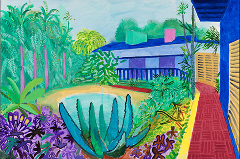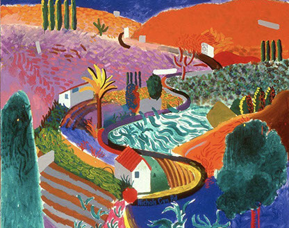 Hockney has created a Fauvist composition that delights the senses. The technique used to create this painting ensures that his choice of shade cannot be misinterpreted. Each hue remains fairly undiluted, reflecting the vivid scene that the painter sees both before him and in his mind’s eye. The force of each splendid stroke of the brush requests consideration, bringing the eye to wander everywhere throughout the canvas.