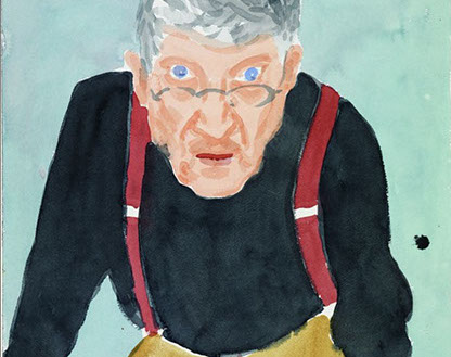 This self-portrait with red braces was displayed at the David Hockney Drawing from Life exhibition. He presented an exhibition dedicated to his drawings, featuring around 150 works created over half a century, at the National Portrait Gallery, London.