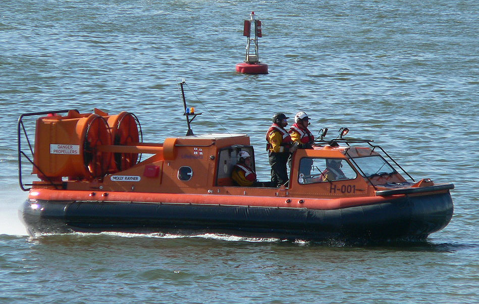 RNLI Hovercraft H-001 Molly Rayner heading back to shore after performing a rescue demonstration in