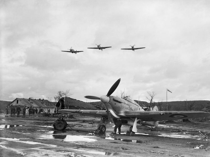 Mark IIB of No. 81 Squadron RAF on the waterlogged airfield at Vaenga, as three