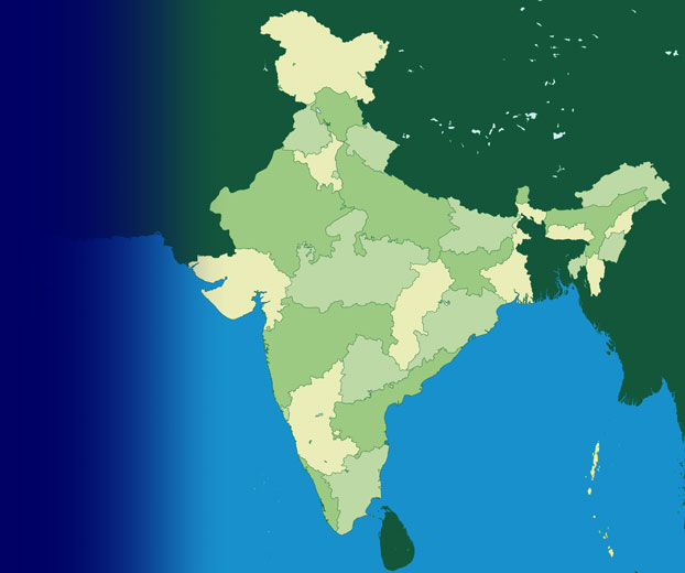 The Republic of India, which lies across the Tropic of Cancer, includes the Andaman and Nicobar Islands in the Bay of Bengal and the Lakshadweep Islands in the Arabian Sea. Its neighbours are Pakistan, Afghanistan and China to the north, then Nepal, Bhutan, Bangladesh and Myanmar (formerly Burma). In the south, the Palk Strait separates it from Sri Lanka.