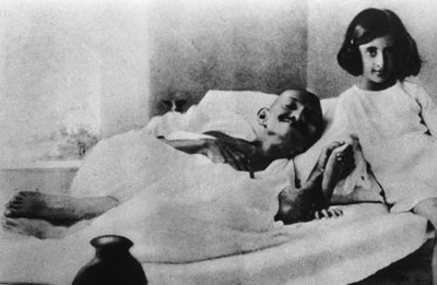 A young Indira with Mahatma Gandhi (no relation) in 1924
