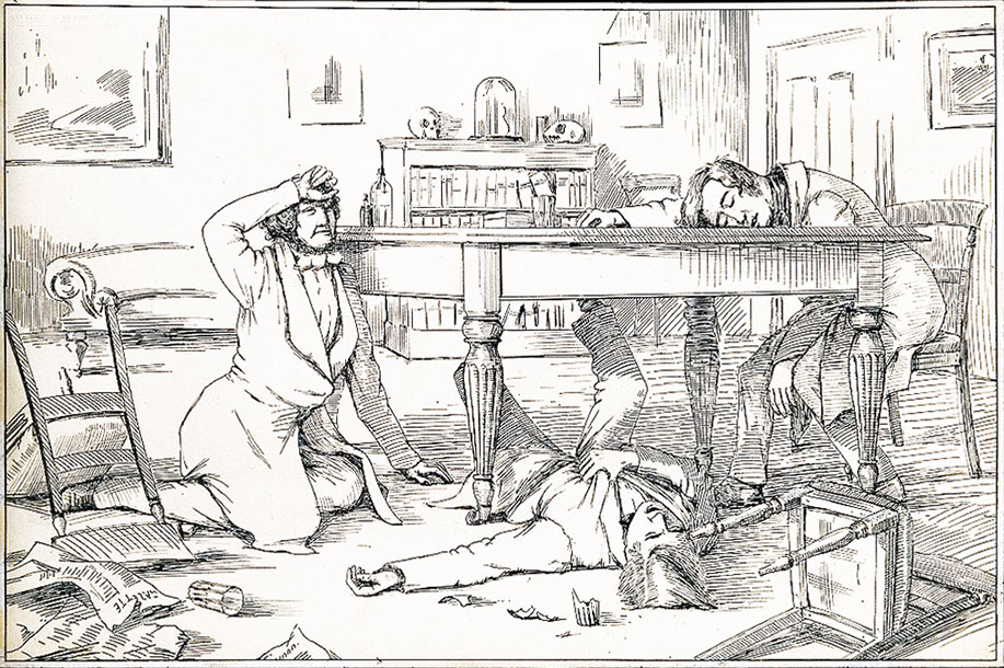 insensible for hours under the table together, much to the alarm of his mother!