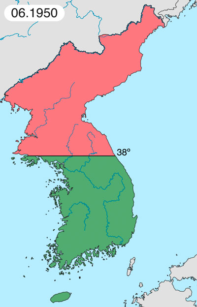 After the surrender of Japan, at the end of World War II, Korea was divided at the 38th parallel into two zones of occupation. The Soviets administered the northern half and the Americans administered the southern half. In 1948 the occupation zones became two sovereign states. A socialist state was established in the north under the totalitarian leadership of Kim Il-sung and a capitalist state in the south under the authoritarian leadership of Syngman Rhee. Both governments of the two new Korean states claimed to be the sole legitimate government of all of Korea, and neither accepted the border as permanent.