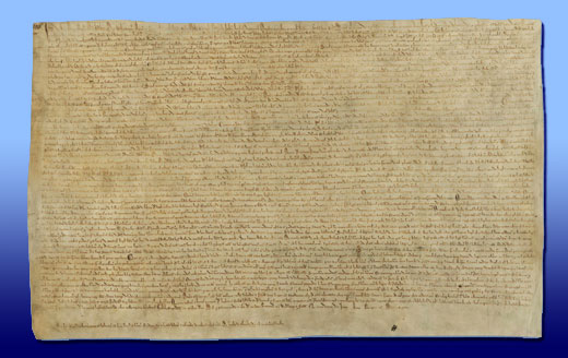 Magna Carta, meaning ‘The Great Charter’, is one of the most famous documents in the world. Originally issued by King John of England as a solution to the political crisis he faced in 1215, Magna Carta established for the first time the principle that everybody, including the king, was subject to the law.