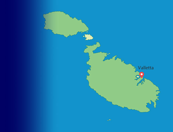 Malta is a Southern European island country comprising an archipelago in the Mediterranean Sea. It lies 50 miles south of Italy, 176 miles east of Tunisia, and 207 miles north of Libya. Malta covers just over 122 square miles, with a population of just under 450,000 making it one of the world's smallest and most densely populated countries. The capital city is Valletta and is the smallest national capital in the European Union.