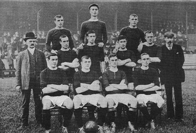The Manchester United team at the start of the 1905-06 season, in which they were runners-up in the Second Division.