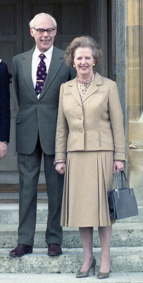 Prime Minister Margaret and husband Denis Thatcher outside Chequers in 1984.