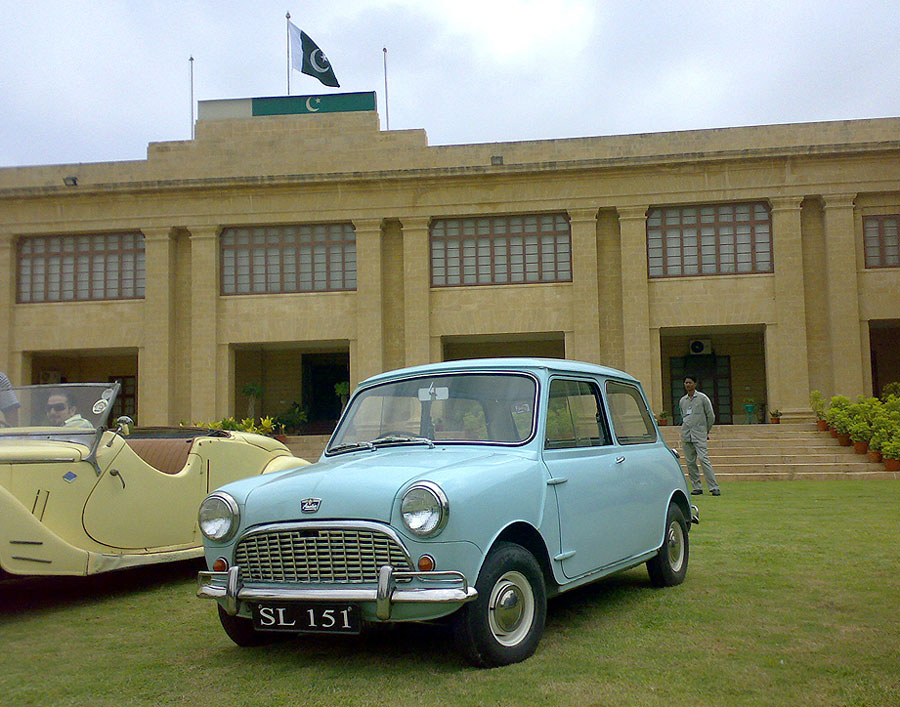 A 1963 Mini 850 Mk1, seen here at Governor House, Pakistan in August 2007 on