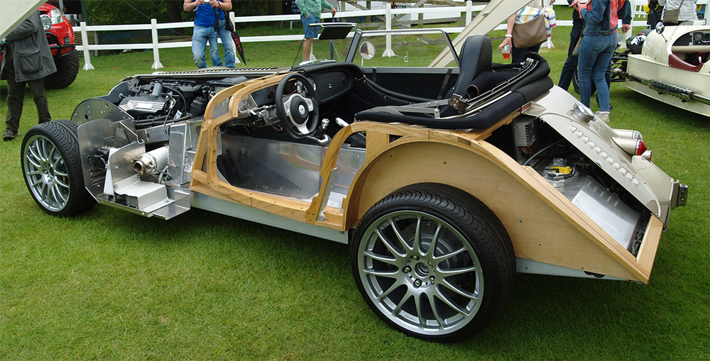 or an aluminium chassis and the ash frame has been to strengthen the body. Current Morgans have a rigid chassis