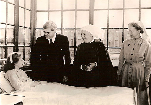 Anenurin Bevan, Minister of Health, on the first day of the National Health Service, 5 July 1948 at Park Hospital, Davyhulme, Manchester