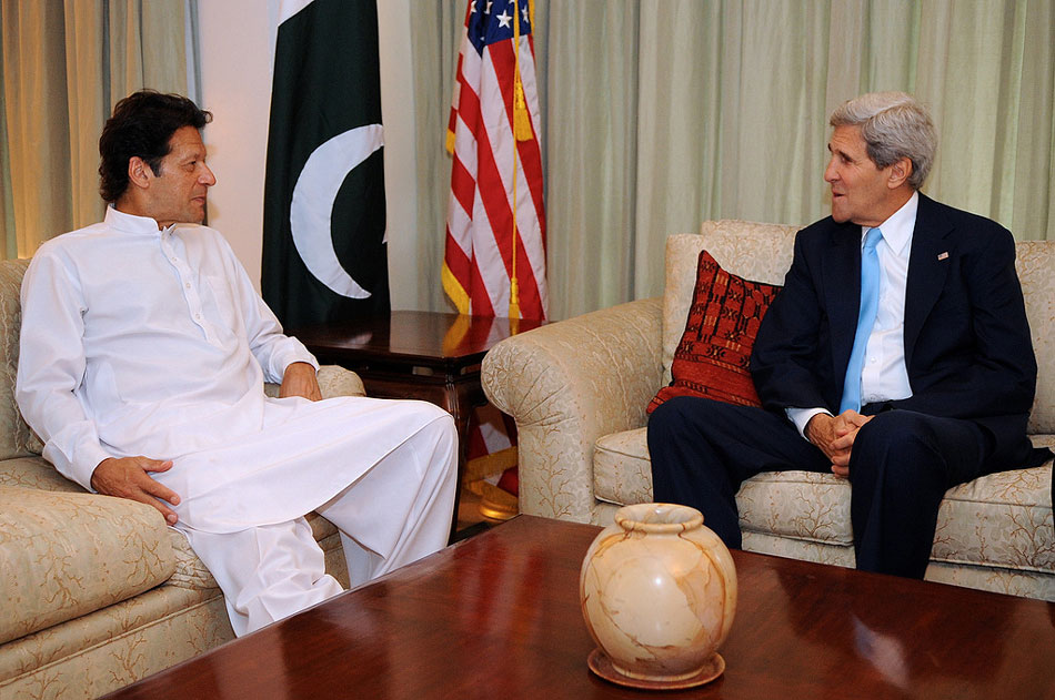 U.S. Secretary of State John Kerry meets with Pakistan Tehreek-i-Insaf Party President Imran Khan