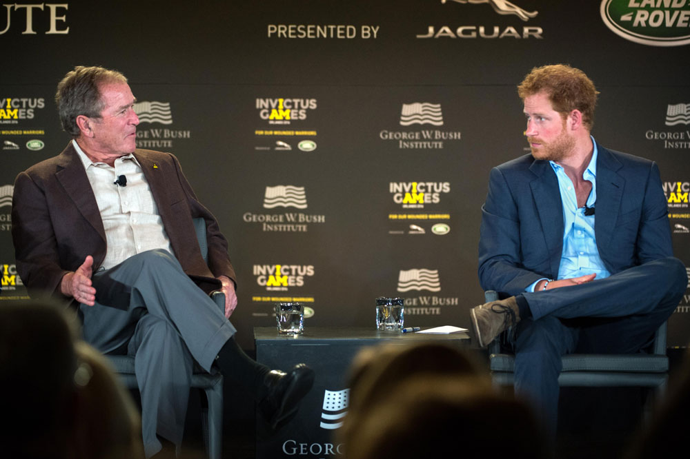 Former President George W. Bush and Prince Harry discuss the topic of post-traumatic stress during the