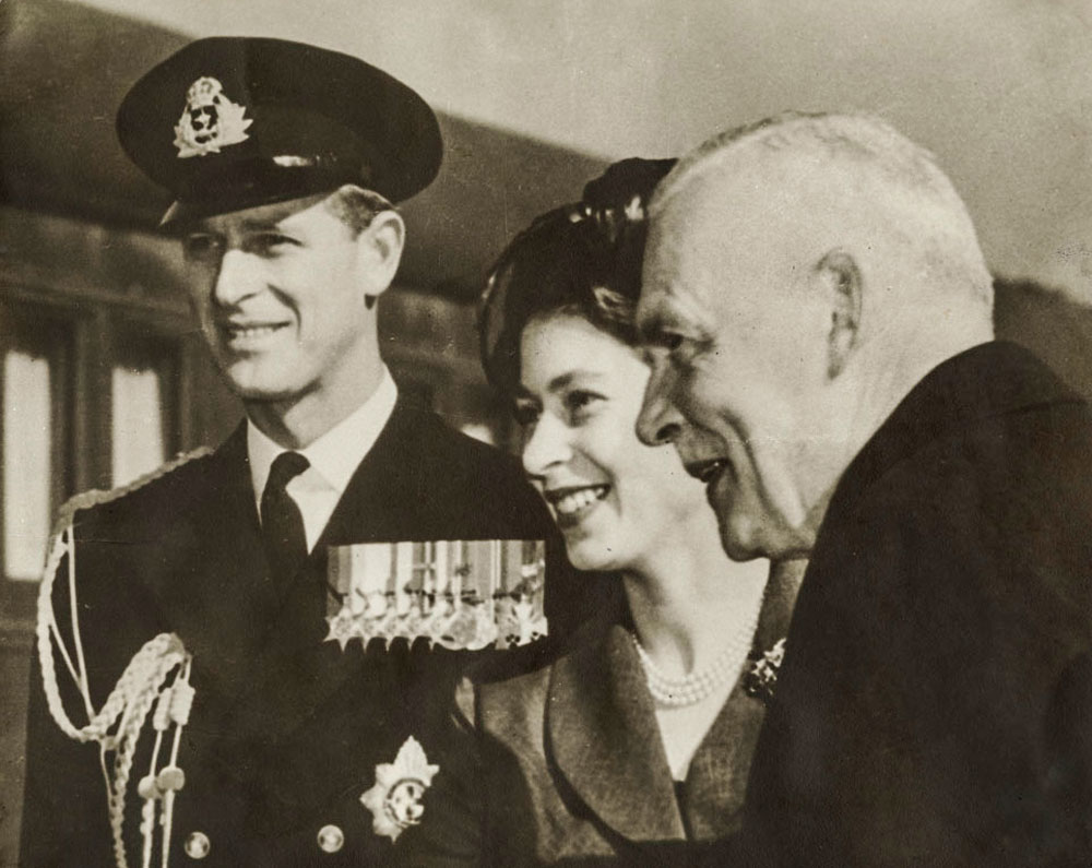 Princess Elizabeth and Prince Philip in 1951 with Canadian Prime Minister Louis St. Laurent
