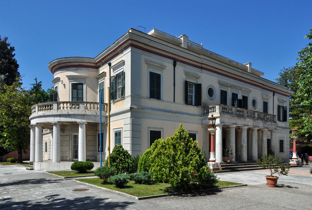 The villa was built as a summer residence for the British Lord High Commissioner of the United States of the Ionian Islands, Frederick Adam, and his second wife, Diamantina 'Nina' Palatino, in 1828-1831, although they had to vacate the villa soon afterwards in 1832 when Adam was sent to serve in India. The villa was rarely used as a residence for the later British governors. In 1833, it housed a school of fine arts, while in 1834, the park was opened to the public. Empress Elisabeth of Austria stayed there in 1863. Here she fell in love with the island, where she later built the Achilleion Palace.