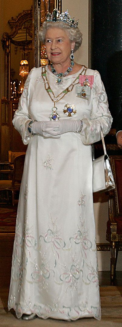 Queen Elizabeth II during a state banquet in honor of Brazilian president Lula da Silva at Buckingham Palace, London in 2006