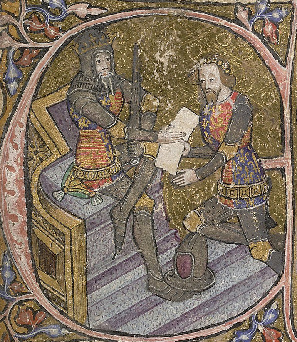 Edward was crowned at age fourteen after his father was deposed by his mother, Isabella of France, and her lover Roger Mortimer. At age seventeen he led a successful coup d’état against Mortimer, the de facto ruler of the country, and began his personal reign. After a successful campaign in Scotland he declared himself rightful heir to the French throne in 1337. This started what became known as the Hundred Years’ War. Following some initial setbacks, this first phase of the war went exceptionally well for England; victories at Crécy and Poitiers led to the highly favourable Treaty of Brétigny, in which England made territorial gains, and Edward renounced his claim to the French throne. This phase would become known as the Edwardian War. Edward’s later years were marked by international failure and domestic strife, largely as a result of his inactivity and poor health.