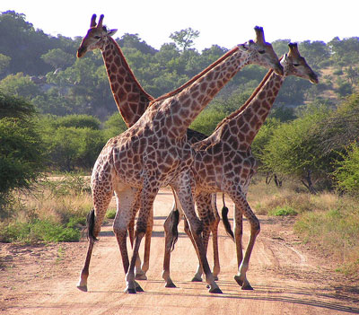 Numerous animals are found in South Africas Bushveld (sub-tropical woodland) including Lions, Leopards, Cheetahs, White Rhinos, Wildebeest, Kudus, Impalas, Hyenas, Hippopotami and South African Giraffes. A significant extent of the Bushveld exists in the north east including Kruger National Park and the Sabi Sand Game Reserve, as well as in the far north in the Waterberg Biosphere.