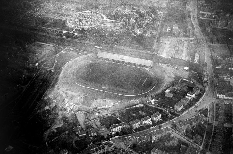 Chelsea's Stamford Bridge stadium with only one stand as it looked in November, 1909.