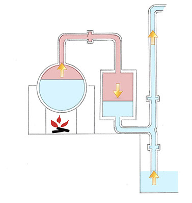 In 1698, Savery filed a patent for his first design for a “fire engine” on July 2, 1698, and soon after presented a working model to the Royal Society of London. After exhibiting his engine at Hampton Court for King William III, he was granted his patent for “a new invention for raising of water, and occasional motion to all sorts of mill works, by the important force of fire, which will be of great use for draining of mines … ” That original 14-year patent received a 21-year extension by British Parliament in 1699 as part of the “Fire Engine Act.”
