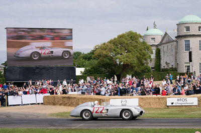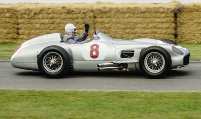 Moss demonstrates the Mercedes W196 at Goodwood in 2014