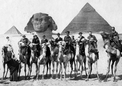 T. E. Lawrence (4th rider from left) with Winston Churchill and Gertrude Bell at Giza during the 1921 Cairo Conference