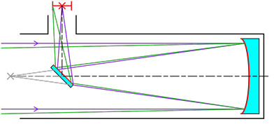Isaac Newton developed the reflector in response to the Chromatic Aberration problem that plagued refractors during his time. Instead of using a lens to gather light, Newton used a curved, metal mirror (primary mirror) to collect the light and reflect it to a focus. Mirrors do not have the Chromatic Aberration problems that lenses do. Newton placed the primary mirror in the back of the tube. Because the mirror reflected light back into the tube, he had to use a small, flat mirror (secondary mirror) in the focal path of the primary mirror to deflect the image out through the side of the tube, to the eyepiece; otherwise, his head would get in the way of incoming light.