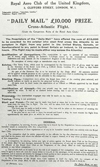 On 1 April 1913 Lord Northcliffe, owner of the Daily Mail newspaper, offered a prize of £10,000 for the first non-stop flight over the Atlantic by a heavier-than-air aircraft. Rival newspapers acted like the whole thing was a big joke. Some even offered their own reward for a successful airplane flight, to Mars.