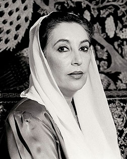Was a Pakistani politician and stateswoman who served as the 11th and 13th prime minister of Pakistan from 1988 to 1990 and again from 1993 to 1996. She was the first woman elected to head a democratic government in a Muslim-majority country.