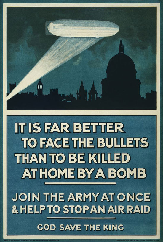 It was the first time in history that Britain had come under threat from the sky. Giant German airships carried out 52 raids on Britain during World War 1, killing more than 500. People were terrified of them! To stay safe, no lights could be used after sunset and loud noises were also banned.