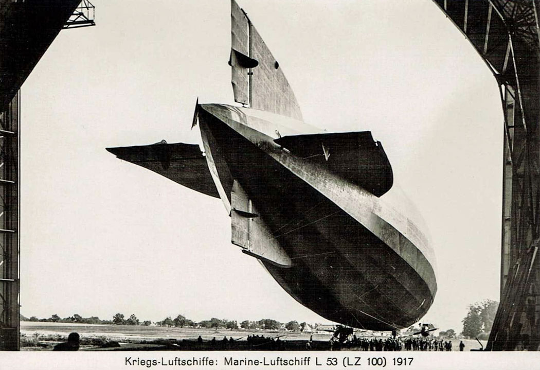 L53 - LZ100 - 19 reconnaissance missions; 4 attacks on England, dropping 11,930 kg (26,300 lb) of bombs. Intercepted and destroyed by a Sopwith Camel flown by Lt Culley RAF, who took off from a lighter towed by the destroyer HMS Redoubt, on 11 August 1918. LZ 100 was the last zeppelin destroyed in the war.